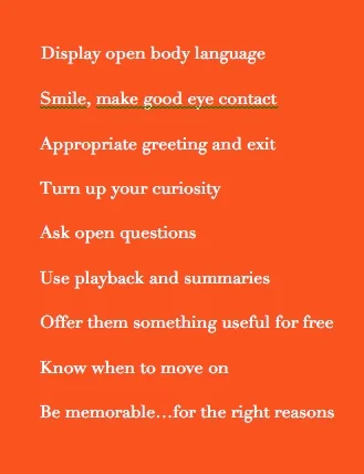 In face-to-face situations, here are some some obvious refreshers about networking skills...